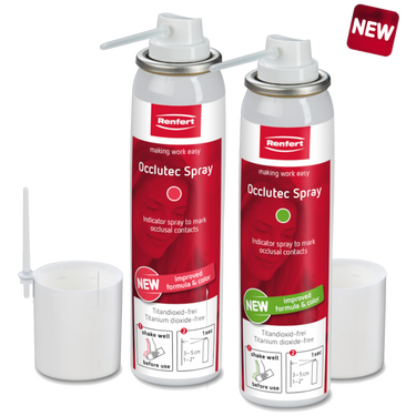 Grazie ai colori brillanti ottimizzati, lo spray Occlutec offre una rilevazione particolarmente chiara e dettagliata dei punti di disturbo nell'ambito degli scheletrati e di corone e ponti.