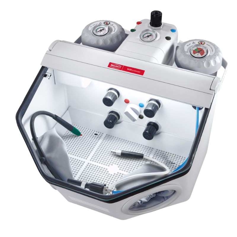 - Flusso abrasivo uniforme garantito dalla camera di miscelazione Venturi di Renfert.