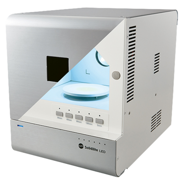 The most modern LED technology with a broad wavelength spectrum for 3D-printed aesthetic composites. Traditional LED curing lights are usually equipped with blue and violet LEDs. The new Solidilite LED curing light, with its White, blue and UV LEDs, offers a spectrum of wavelengths from 380 to 650 nm and is therefore also prepared for future generations of composite materials. The thermal energy developed by the white LEDs promotes and accelerates the polymerization process.